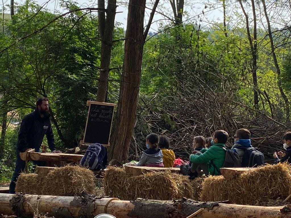 I bambini hanno partecipato alla “Scuola nel Bosco”, la proposta di Capogrosso e del suo staff che porta gli allievi a partecipare alla lezione in un’aula all’aperto creata nel bosco, appunto, con materiali naturali: panche di legno e balle di fieno per sedersi, cattedra ricavata da un tronco, lavagna con gessetti naturali.