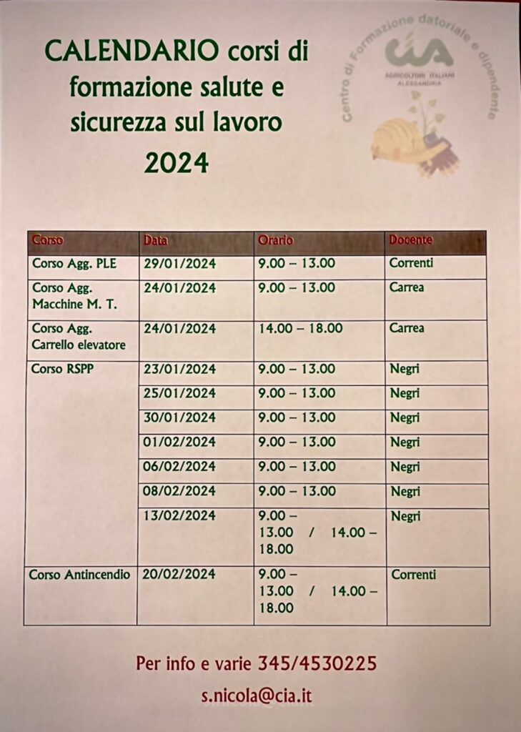 Share Facebook Twitter Email Telegram WhatsApp Nuovi corsi in avvio in materia di Sicurezza aziendale. Per info e iscrizioni: Simone Nicola, s.nicola@cia.it – 3454530225. sicurezza