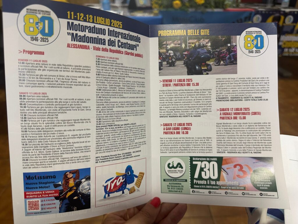Il motoraduno più longevo e partecipato d’Italia (tra i più famosi d’Europa) si svolgerà tra Alessandria e Castellazzo Bormida, sede del Santuario della Madonnina nota nel mondo motociclistico, dall’11 al 13 luglio prossimi.