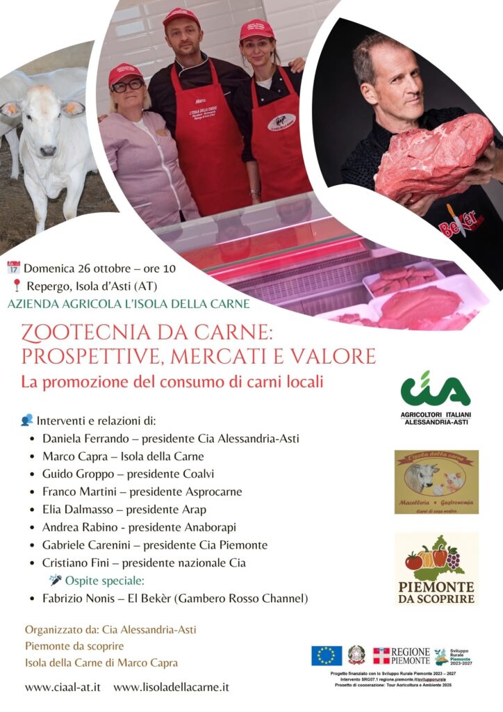 Dopo i saluti istituzionali della presidente Cia Alessandria-Asti Daniela Ferrando, interverranno: Marco Capra – titolare di Isola della Carne, Guido Groppo – presidente Coalvi, Elia Dalmasso – presidente Arap, Andrea Rabino – presidente Anaborapi, Gabriele Carenini – presidente Cia Piemonte. Dato l’alto livello tecnico che qualifica l’evento, sarà presente anche il presidente nazionale di Cia-Agricoltori Italiani Cristiano Fini che curerà le conclusioni.