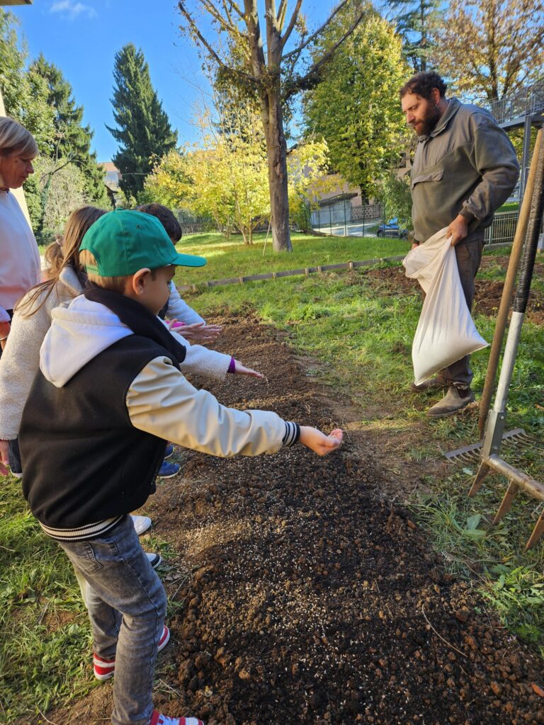 Con la semina del grano continuano gli  appuntamenti con la Scuola Primaria Zucca di Novi Ligure per il progetto “Orto a scuola” sotto la guida della dirigente Giovanna Ravazzano e le Fattorie Didattiche del circuito di Turismo Verde Cia e Slow Food.